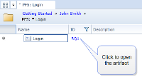 3. Search for the Login artifact and then open the artifact. To open an artifact from the browse tab, right-click the artifact and select Open.